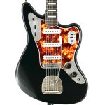 The Treble Vi by Black Bobbin is, for all intensive purposes a full scale (25.5") Jag (normally 24"). When our bud Shelby debuted these we knew we had to spec some out. This one has 3 pickups to make it extra brilliant and the middle position is nothing short of Glorious. Add the Matte Black finish, the bound rosewood neck with block inlays, a matching headstock, and a fantastic Spitfire Tort Guard.