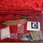 Case: Includes the original tweed case, case candy, and photos of the original owner with the guitar. (the original included cloth cord is missing one end).